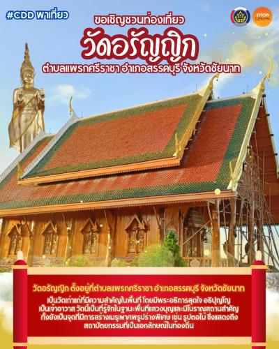 สำนักงานพัฒนาชุมชนอำเภอสรรคบุรี ขอเชิญชวนท่องเที่ยว #โอทอปนวัตวิถี "วัดอรัญญิก" ตั้งอยู่ที่ตำบลแพรกศรีราชา อำเภอสรรคบุรี จังหวัดชัยนาท
